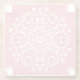 This white mandala sits on a peach pink background. The colors are floral and light. Part of the Mola Mandala Collection.