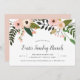 Chic floral Easter Sunday brunch invitations feature a cascading top border of blush pink and peach flowers with lush botanical greenery. Personalize with your Easter brunch details in inky off-black serif and calligraphy lettering.