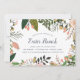 Chic Easter Sunday brunch invitation features a border of blush pink and peach flowers with green leaves and botanicals. Personalize with your Easter brunch details in elegant ink blue lettering accented with hand lettered style calligraphy script lettering.