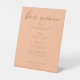 Peach Minimalist Script Summer Wedding Bar Menu Pedestal Sign