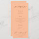Peach is the new trending color for summer brides. Our sweet peach wedding dinner menu features elegant light brown script for a trendy, minimalist event in the afternoon for a feminine bride who loves to stay current and modern.