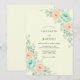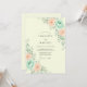 Soft watercolor blooms in delicate peach and serene mint hues adorn this design. Delicate greenery weaves through the blossoms, creating a gentle and romantic ambiance. This artwork evokes a feeling of natural beauty and understated elegance for a special occasion.
