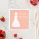 A chic floral wedding gown bridal shower paper napkin. Shown in modern colors of peach with soft teal mint flowers. Easily personalize for your event.