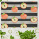 This design features a textured Black and white stripe background with whole and sliced Peach cascading in the foreground. Jazz up any home with these trendy fruit and vegetable designs!!
