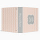 A stylish monogram binder with pretty light gray and peach gingham pattern. Customize the spine and add your monogram for a elegant school or office accessory.