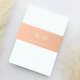 Wrap your wedding invitations in style with this elegant wedding envelope belly band. Designed with a solid peach color background, it features a clean, simple layout highlighting the modern bride and groom’s names in a mix of classic calligraphy script and refined typography. A subtle monogram adds a personalized touch, making it perfect for a minimalist wedding with a timeless yet contemporary feel.