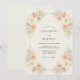 This design features a delicate arrangement of soft peach and cream roses nestled among muted beige foliage. The warm color palette creates a serene and romantic mood, perfect for an airy summer event. Subtle yellow accents add a touch of sunshine to the watercolor botanical artwork.