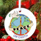 Peach on Earth Globe Peace Dove Ceramic Ornament