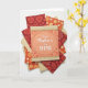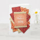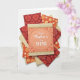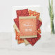 This greeting card features an overhead arrangement of layered paper pieces, centered on a peach rectangular card framed by a thin oval border. Inside the oval, a crisp white handwritten-style message sits neatly in the middle, reading like a sweet note to someone close ❤️. Along the top and bottom edges, narrow decorative bands combine a golden scalloped trim with a cream, lace-like pattern that adds a gentle, romantic touch. Around the main card, several coordinating papers fan outward in a tidy spread, like friends gathered close around a shared moment. The surrounding designs mix deep crimson, marigold, and terracotta tones with floral shapes, fruit-like segments, and curling paisley patterns, softened by a few plain cream layers that keep the look calm 🌼. One cream piece shows a subtle stitched edge, and the soft, even lighting highlights the raised textures and slight shadows on a bright white background.