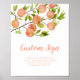 Peach theme birthday party custom sign. Watercolor illustration of peaches on a tree branch.