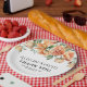 This elegant wedding paper plate showcases a delightful arrangement of beautiful peach peonies and sage green leaves. The couple's names are elegantly presented in a decorative font, providing a personal flair to the plate. A sincere 'Thank You' message is also featured, ideal for conveying appreciation to guests. The design is beautifully bordered with a fine line, elevating its sophisticated look and making it a charming element for any wedding event.
