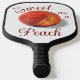 Show your love for summer with this peach theme pickleball paddle. This velvety, sweet peach design features warm and bright tones of blush, scarlet, amber, coral and lilac. Personalize by changing or removing the text. I created this pattern from an image in my original acrylic painting.
