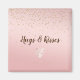 Delicious Peach Pink Blush Gold Glitz Confetti Sparkle with chocolate brown personalized quote: hugs & kisses and a sweet heart