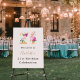 A peach colored background. Decorated with foral numbers in faux gold and pink. Personalize and add a name and age.