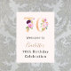 A peach colored background. Decorated with foral numbers in faux gold and pink. Personalize and add a name and age.