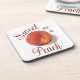 Show your love for summer with this peach theme coaster. This velvety, sweet peach design features warm and bright tones of blush, scarlet, amber, coral and lilac. Personalize by changing or removing the text. I created this pattern from an image in my original acrylic painting.