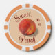 Show your love for summer with this peach theme poker chips. This velvety, sweet peach design features warm and bright tones of blush, scarlet, amber, coral and lilac. Personalize by changing or removing the text. I created this pattern from an image in my original acrylic painting.