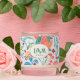 Peach, Jade and Teal on creamy white background is a fruit, foliage, and polka dot pattern. English garden styling reminiscent of old chintz fabric. Pretty, light, and colorful background for your initial monogram and special date. Perfect for wedding anniversary gift, or any other special milestone memory. Customize the text.