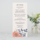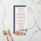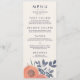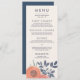 Place these elegant menu cards at each place setting for a beautiful touch to your wedding reception setup. Modern floral design in a chic coral and navy color palette features watercolor poppy flowers in coral peach, with leaves and buds in dusty navy blue and faded hunter green. Add your names and wedding date to the top. Coordinates with our Peach Poppies wedding invitation collection.