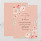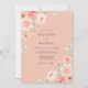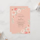 This design features a warm palette of muted peach and coral tones, perfect for a romantic spring event. Delicate watercolor peonies and roses in soft shades of blush and cream adorn the corners, complemented by sage green foliage. The aesthetic is soft and feminine, evoking a sense of timeless elegance and ethereal beauty.