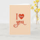This Valentine's Day card shows the words “I love you” on a soft peach background, keeping the focus on a simple romantic message ❤️. The large capital “I” is in deep red and sits near the top, standing out right away. Next to it is a red heart that takes the place of the word “love,” and inside the heart the word “love” appears in smooth white cursive lettering. The word “you” is written underneath in matching deep red cursive, with a gentle downward flow that feels like a note you’d sign with care. A faint shadow under the red letters and heart adds a little depth without distracting from the message. The overall look feels calm and affectionate, making it easy to give to a partner, a close friend, or anyone you care about 🥰. It’s the kind of card that says what you mean without needing extra words, perfect for sharing Valentine’s Day.