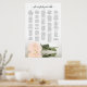 This gorgeous wedding seating chart features a photo of a long-stemmed pale orange or light peach colored rose lying on its side reflecting in a pool of water with waves and ripples. The title reads "please find your table" in elegant lacy script calligraphy. There is space for the up to 250 names with the names of the couple and wedding date below. Wonderful way to help your guests find their tables while making your reception more beautiful.