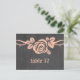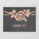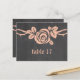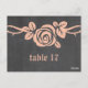Sweet and pretty Rose Chalkboard Table Number Postcard in peach featuring a single lovely rose on a vine on a chalkboard look background. This elegant double-sided design is perfect for a spring or summer wedding. Easy to customize, simply add the appropriate table number(s) in the text field provided. Click "Customize It" to find more personalization options.