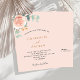 Peach colored background. Decorated with a rose gold and blush pink floral, rose flower and green watercolored eucalyptus leaves, sprigs, greenery and faux gold sprigs. Personalize and add your names and wedding details.