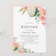 Peach Rose & Hydrangea Pink Girl Baptism Invitation