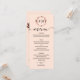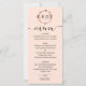A simple chic foliage rose gold foil monogram peach rose wedding menu card. Easy to personalize with your details. Modern boho wedding menu card editable, wreaths photo wedding invitation, customizable, calligraphy handwritten font, simple, elegant.