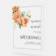Welcome your wedding guests with this elegant frosted acrylic sign featuring branches of peach roses, peonies and white flowers with sage green leaves in the upper left corner, beautifully framed by a fine black border. The charming floral accents and decorative typography create a warm invitation for everyone to celebrate your special day.