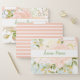 Luscious watercolor peach roses and greenery monogram file folders. The center folder is a peach stripe to coordinate with the left and right.