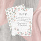 Peach roses and leafy green vine frame this wedding RSVP card. Leafy rose vine borders are lovely for a purple themed springtime or summer wedding. Small floral card is easily customized for a response card, details card, or any enclosure cards.