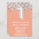 Peach Silver 1st Birthday Party Invitation