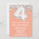 Having your Peach Silver 4th Birthday Party Invitation match the theme of your party is a great detail that your guests will appreciate. The thoughtfulness of a consistent party theme is often appreciated and can show your guests that you can host a cohesive event.