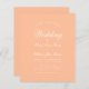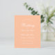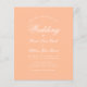 A simple, minimalist budget wedding invitation. It has only white text on peach background (a modern color). The word Wedding and the names are written in an elegant calligraphic script.