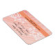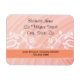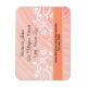 Promote your business with this customizable flexible magnet sporting your information in two separate locations. The magnet has a white filigree, floral and soft peach spiral design over an altered computer generated fractal background of pink and peach colored spirals coming from both ends. The pale peach outlined orange bar sets off your business information.