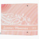 Use this Avery customizable binder to share your work or school project, photos or scrap booking. The design has a white filigree and floral design running across the front and back over a soft peach and pink spiral altered computer generated fractal background. The white outlined peach bar sets off your text. Fill in the template blocks to personalize it for your use or remove any text.