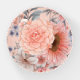 A lovely peach, cream and blue floral paperweight with a large sunflower, a dahlia, alstroemeria, blue flowers and blue-sage foliage on a peach shade variation background.