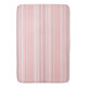 Chic boudoir dusty peach, taupe, white, and blush tones in a modern stripe print shown on a plush bathmat.