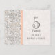 Peach Vintage Lace Wedding Table Number Card