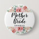 Peach Watercolor Floral Frame Trendy and Chic Mother of the Bride Monogrammed Name Bridal Wedding Party Favor Button
