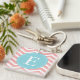 Peach White Chevron Blue Monogram Keychain