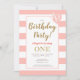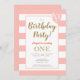 Peach White Gold Glitter 1st Birthday Party Invitation
