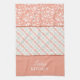Peach White Gray Floral & Diagonal Plaid Kitchen Towel