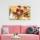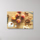 An array of ingredients for Peaches with Almond Crisp, all displayed on this wrapped canvas wall hanging.
