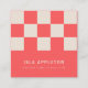 A modern and bold design featuring checker peach and vanilla colored background for a unique business card.