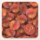 Show your love for summer with this peach theme coaster. This velvety, sweet peach design features warm and bright tones of blush, scarlet, amber, coral and lilac. Personalize by changing or removing the text. If you only want the background peach design, you can delete the text and the graphics behind the text to reveal the full design. I created this pattern from an image in my original acrylic painting.