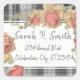 Peachy Pink and Gray Plaid Return Address Square Sticker