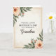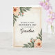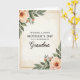 Designed with a refined portrait layout, this card centers on a Mother’s Day greeting that feels like a gentle embrace ❤️. The main message sits in the middle in a dark, classic serif type, with an affectionate title just beneath it in a flowing cursive style. A thin, shiny gold rectangular outline frames the wording, giving the text a calm focal point. In the upper left and lower right corners, soft watercolor flowers in peachy pink and blush tones lean inward, as if the two corners are quietly reaching toward each other 🌼. Small buds and layered leaves in muted sage and olive greens fill out the clusters, adding a tender, garden-fresh closeness. The creamy ivory background has faint, organic washes and light sepia smudges that resemble gently aged paper. The floral edges look softly feathered, with translucent paint layers and subtle color shifts around the petals and leaves. The gold frame lines stay fine and even, set against the pale backdrop with the blossoms balancing opposite corners.